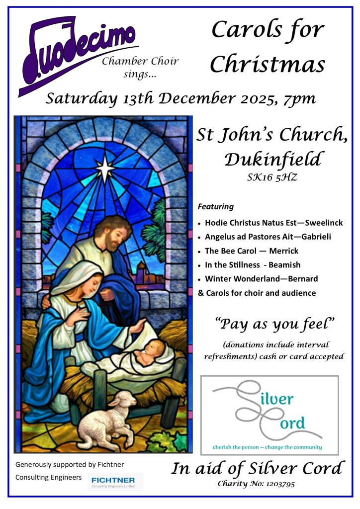 A concert of beautiful Christmas music and well-loved seasonal song from Duodecimo chamber choir. In aid of Tameside East Foodbank.